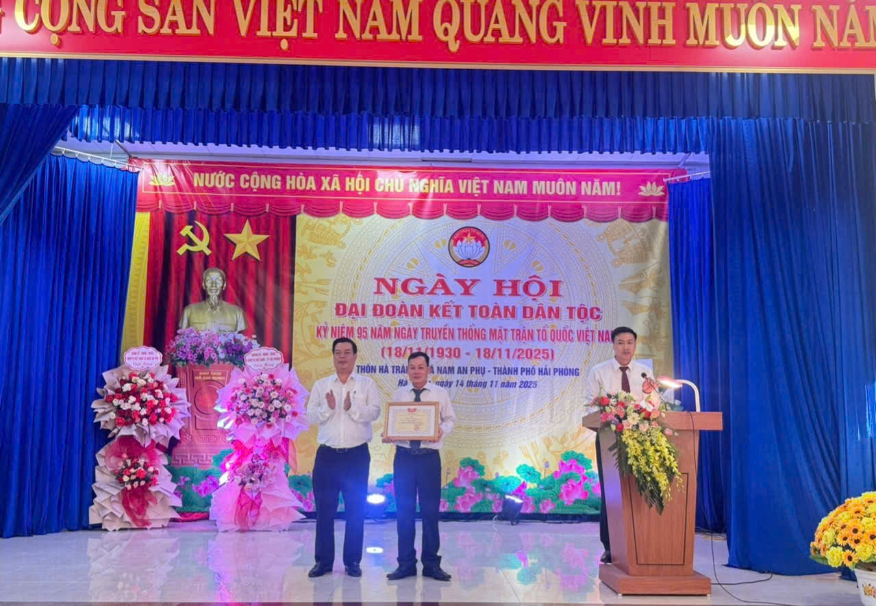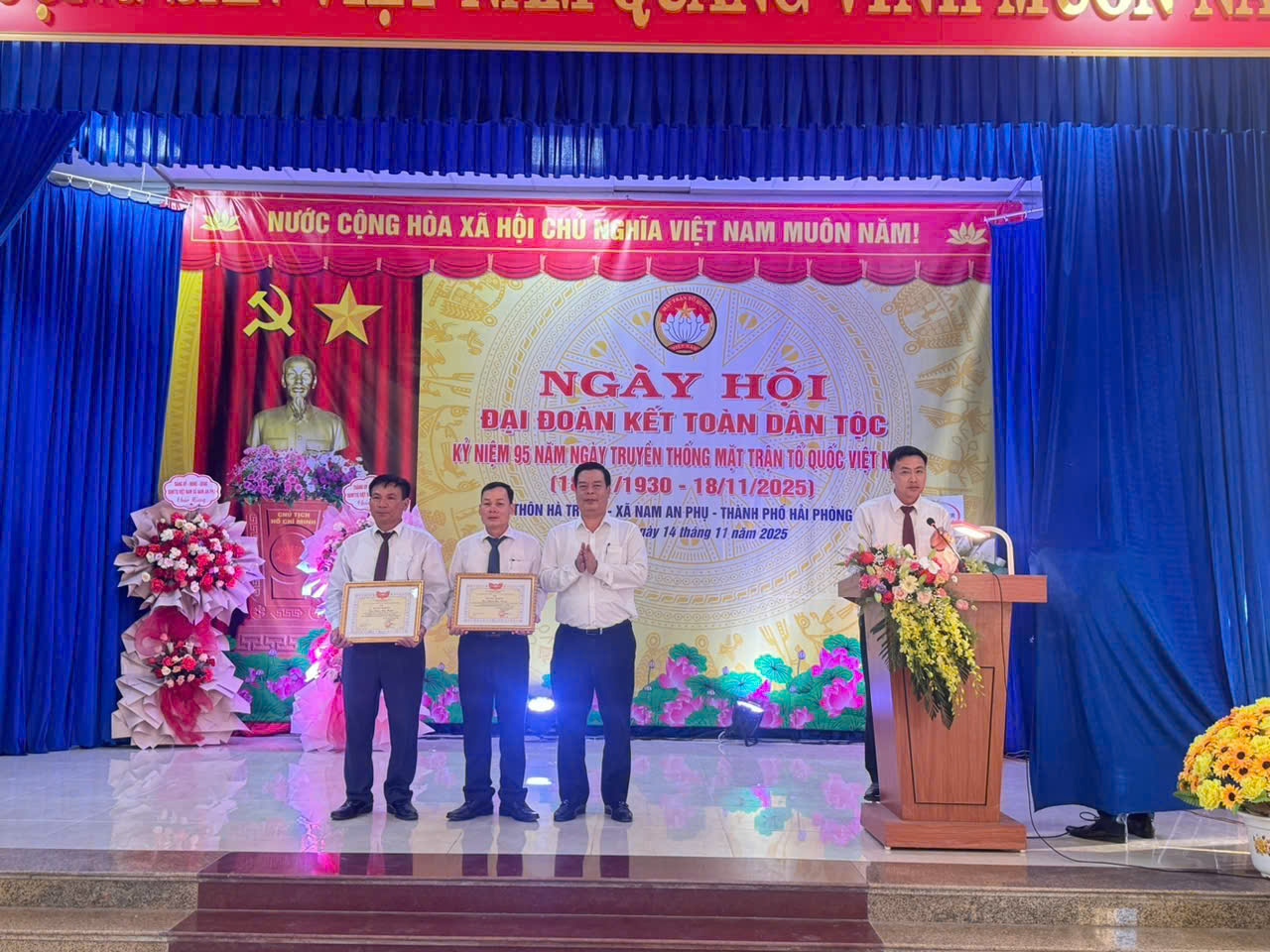 Được sự nhất trí của Thường trực Đảng ủy, Ban Thường trực Ủy ban MTTQ Việt Nam xã và Chi ủy Chi bộ thôn Hà Tràng. Chiều ngày 14/11/2025 Ban Công tác Mặt trận thôn Hà Tràng long trọng tổ chức ngày hội “Đại đoàn kết toàn dân tộc”; kỷ niệm 95 năm ngày truyền thống Mặt trận Tổ quốc Việt Nam (18/11/1930 - 18/11/2025), đây là đơn vị được chọn tổ chức điểm Ngày hội Đại đoàn kết của xã. Về dự ngày hội có các đồng chí: Phạm Văn Thép, Ủy viên Ban Thường vụ Thành ủy - Giám đốc Sở Khoa học và công nghệ thành phố Hải Phòng; Lưu Xuân Lâm - Bí thư Đảng ủy, Chủ tịch HĐND xã; Ngô Xuân Phương - Phó Bí thư Thường trực Đảng ủy xã; Nguyễn Văn Tuy - Phó Bí thư Đảng ủy, Chủ tịch UBND xã; các đồng chí trong BTV Đảng uỷ xã, Ban Thường trực Ủy ban MTTQ xã và đông đảo cán bộ, đảng viên và nhân dân thôn Hà Tràng.